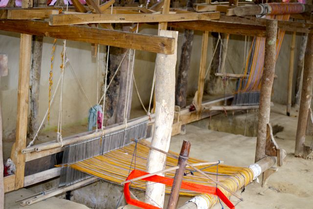 Aside from the lack of tools beyond very basic ones, there was also an absence of modern farm tools. There were wooden plows and wooden carts. A wooden loom and spindle were set up under a tarp. Woven baskets were everywhere. A few metal pots were stacked beside an outdoor cooking fire. Skinny farm animals were tethered to anything
